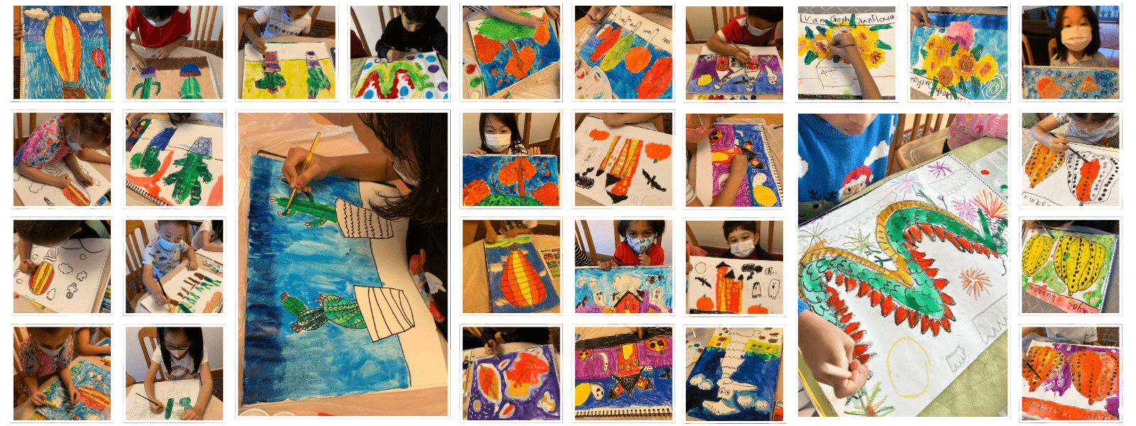 “Albert has been learning with Ms. Geetha for half a year now, and he is always excited to go to class. He explores happily and freely with colors and became a fan of the art world. I really appreciate the nice environment and guidance provided by GG Art Studio.”